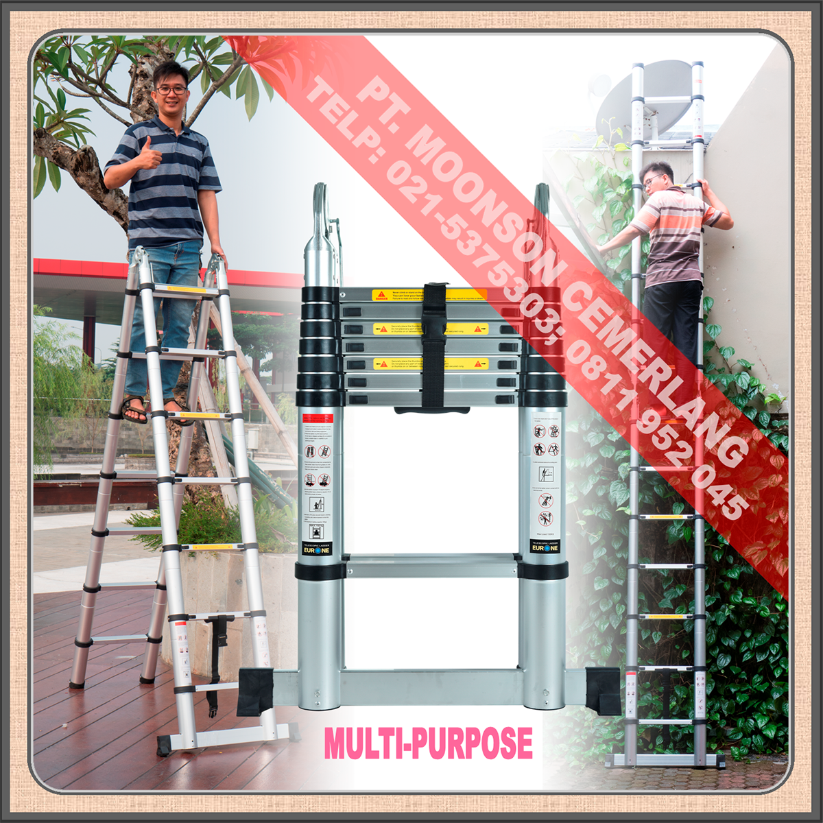 Terakhir yang tak kalah pentingnya adalah pastikan bahwa anda tahu benar tipe-tipe tangga teleskopik yang ada dan berapa tinggi maksimum yang anda butuhkan sebelum membeli. Tangga teleskopik terdiri dari tiga tipe yaitu: lurus (single straight), segitiga (double), dan multifungsi (multi-purpose) sebagaimana terlihat pada gambar-gambar di halaman ini. Masing-masing tipe juga terdiri dari beberapa pilihan tinggi maksimum. Lebih lengkapnya silahkan klik gambar di bawah ini: