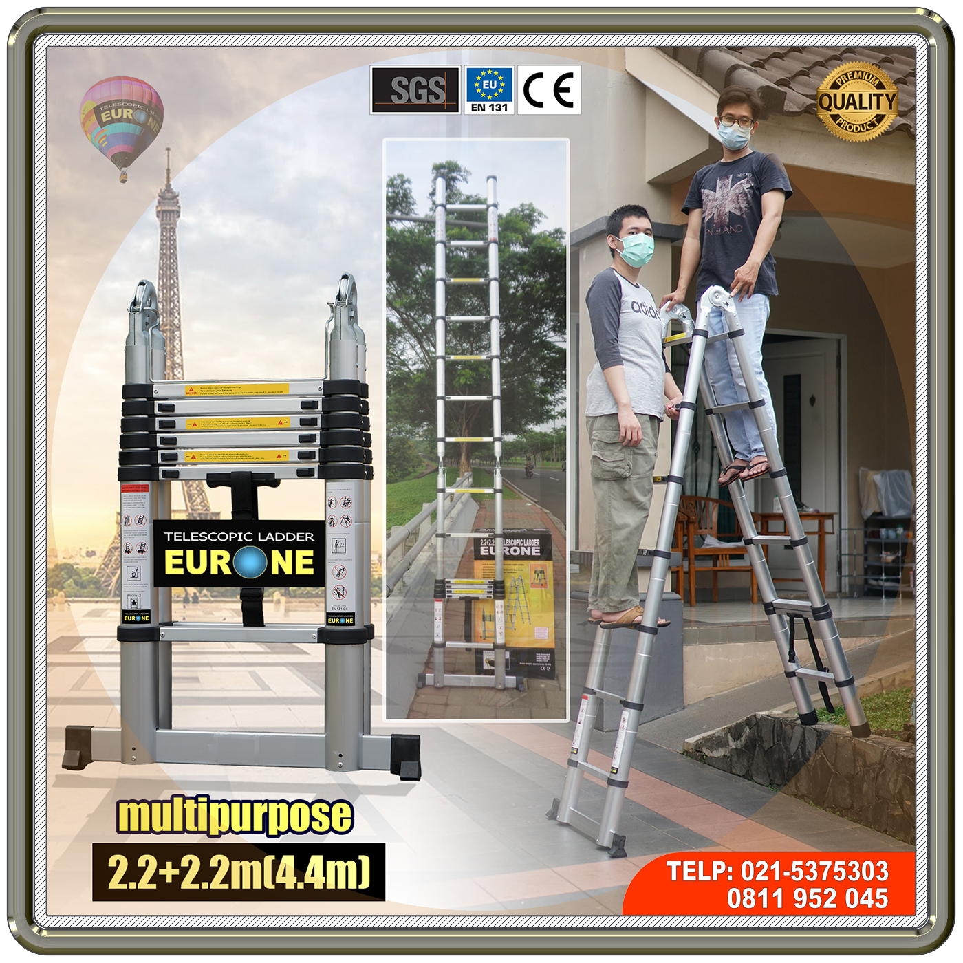 Terakhir kami hadirkan tangga teleskopik multipurpose 5m, atau ditulis 2.5+2.5m(5M) sebagai yang tertinggi untuk merek EURONE. Dan di atasnya adalah 2.9+2.9m(5.8m) merek KLUGGEN- tidak ada lagi yang lebih tinggi dari ini. Mengapa demikian? Nah, ini bagian yang sangat penting untuk kami jelaskan dimana sering kurang dipahami oleh para calon pembeli.